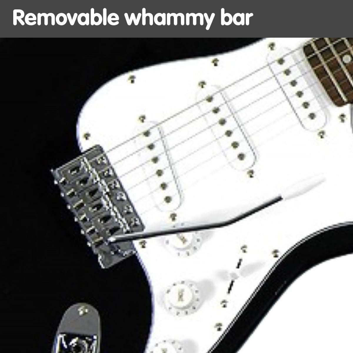This 39-inch Karrera electric guitar has an adjustable neck truss rod, features not found on cheaper models. It also has a pickup selector switch and a removable whammy bar so you can experiment with your music!