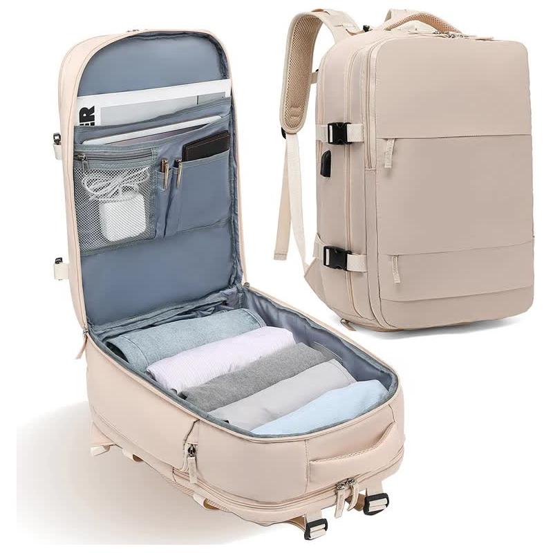 Multi-Compartment Travel Backpack with Shoe Storage - This versatile Apricot backpack is perfect for gym sessions, travel, or daily use. It features a unique independent shoe compartment, keeping your footwear separate from other belongings, along with wet-dry separation pockets to store damp clothes or toiletries without worrying about leaks. Designed with comfort in mind, the padded shoulder straps provide excellent support, making it ideal for long wear. A perfect combination of practicality and style for those always on the go.
