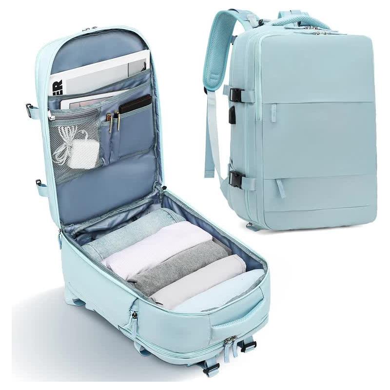 Multi-Compartment Travel Backpack with Shoe Storage - This versatile Light Blue backpack is perfect for gym sessions, travel, or daily use. It features a unique independent shoe compartment, keeping your footwear separate from other belongings, along with wet-dry separation pockets to store damp clothes or toiletries without worrying about leaks. Designed with comfort in mind, the padded shoulder straps provide excellent support, making it ideal for long wear. A perfect combination of practicality and style for those always on the go.