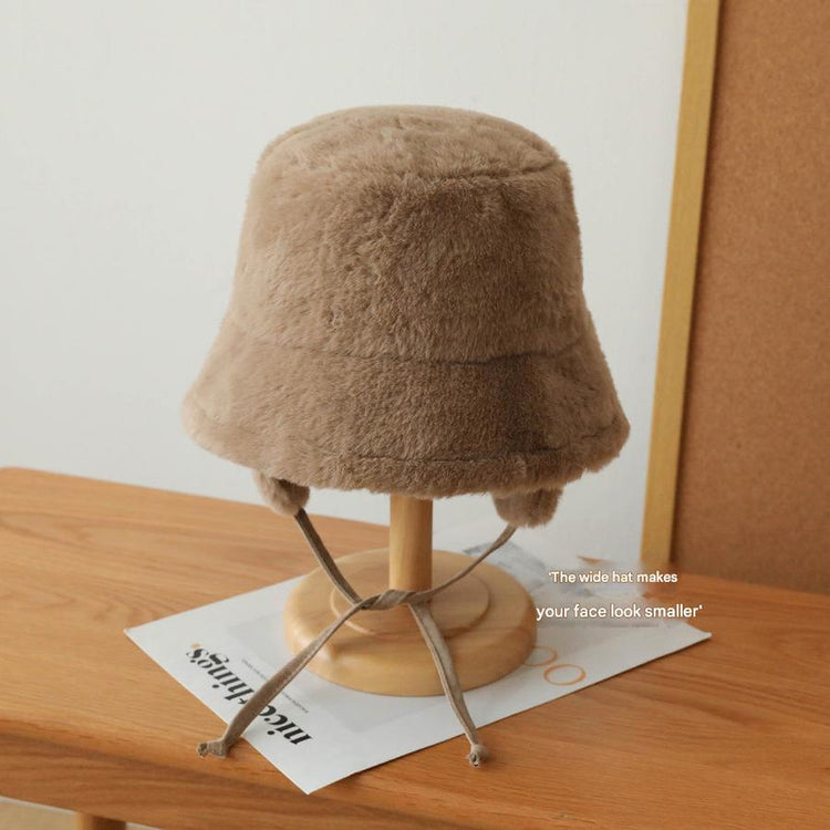 Plush Bucket Hat with Ear Flaps -Warm furry winter hat