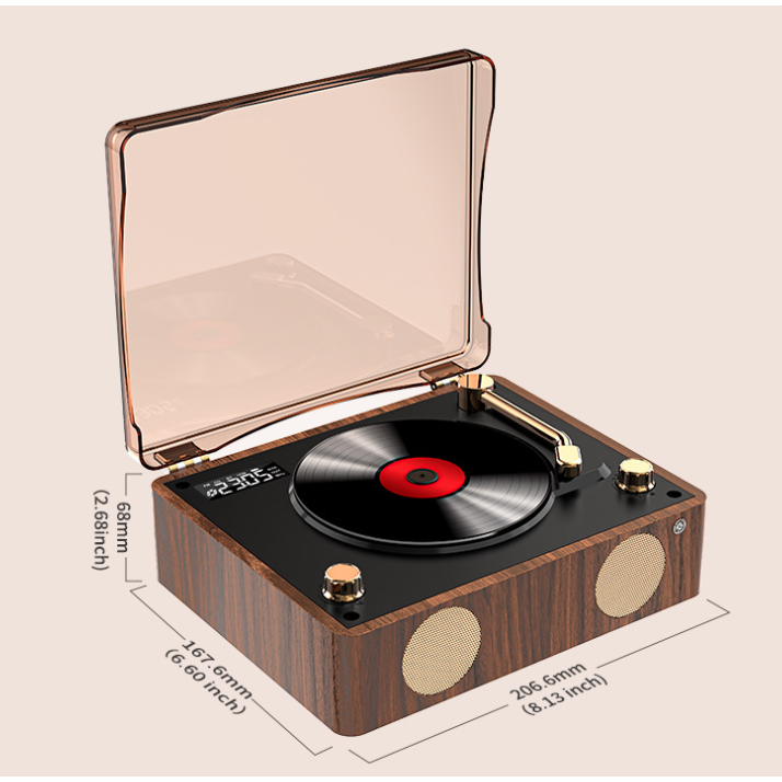 Experience the perfect blend of nostalgic design and contemporary audio technology with this Retro Turntable Style Speaker. While evoking the classic look of a vintage record player, this versatile device functions as a Bluetooth speaker and a CD player, complete with built-in speakers and a clear digital display.