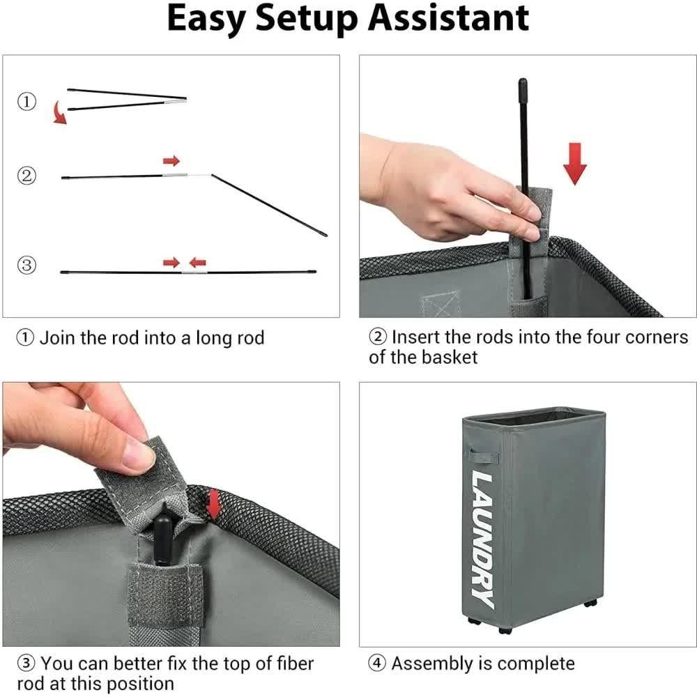 Effortlessly manage your laundry with this durable and stylish rolling laundry basket. Designed for convenience, it features a spacious 42L capacity, smooth-rolling wheels, and sturdy construction, making it an ideal choice for home, dorms, or laundry rooms.