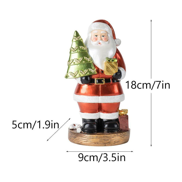 Santa Claus Figurine with Christmas Tree - Add a classic holiday touch to your decor with this charming Santa Claus figurine holding a christmas tree. Crafted from high-quality resin, this festive decoration stands 18cm (7in) tall and 9cm (3.5in) wide, making it ideal for tabletop displays, mantles, or as a centerpiece. With vibrant colors and fine details, this Santa figurine embodies the spirit of Christmas, bringing warmth and cheer to any space.