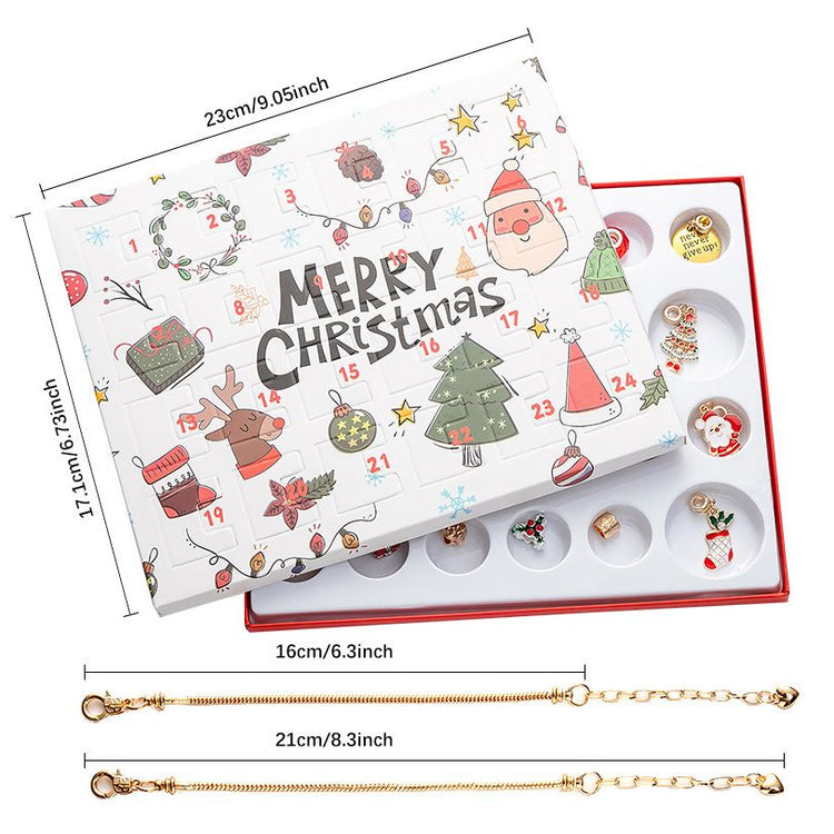 24-Day DIY Christmas Advent Calendar Jewelry Kit - Silver-Tone Charm Bracelet Set with Holiday-Themed Charms for Kids & Families