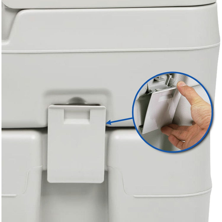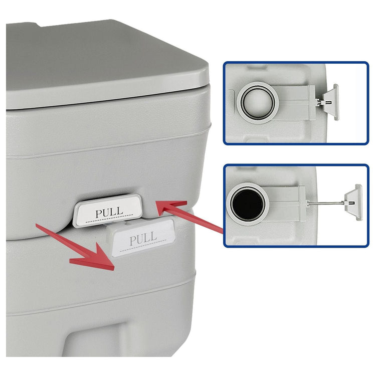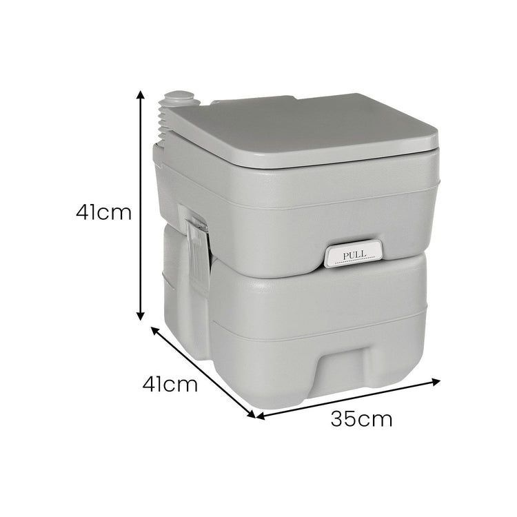The user-friendly press flush pump lets you enjoy a hassle-free experience that rivals your home bathroom. Just press the pump, and let the powerful flushing mechanism do the rest. No need to worry about frequent emptying. This portable toilet boasts a generous 20-litre waste tank capacity, allowing for extended use without interruptions. Built to withstand the toughest outdoor conditions, this portable toilet is crafted with durable PE and ABS materials. Moreover, the double-sealed drain valve ensures a secure and odour-free operation, keeping any unwanted smells at bay.
