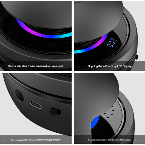 - Functions: Automatic Rope Rotation, Jump Counting, Bluetooth Speaker, Adjustable Speed, LED Lights
