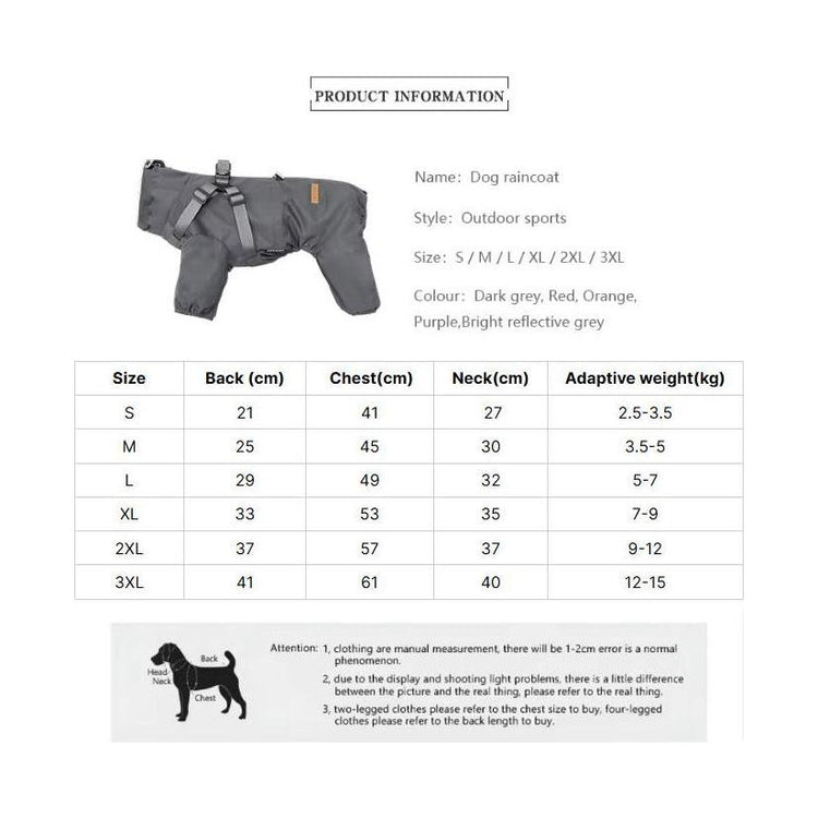 Keep your furry friend dry, comfortable, and safe during rainy days with this premium dog raincoat. Designed with functionality and style in mind, this raincoat ensures optimal protection and convenience for you and your pet.